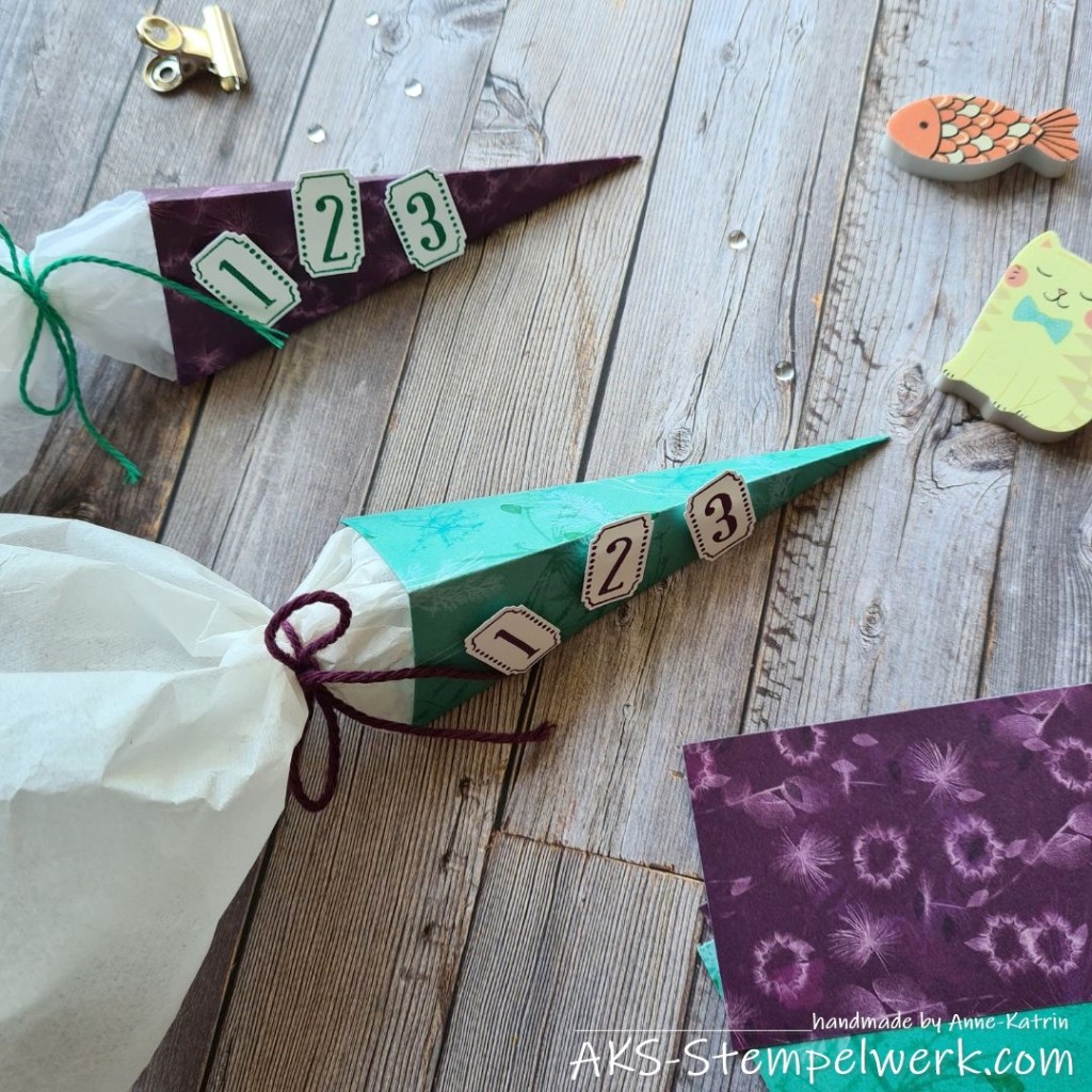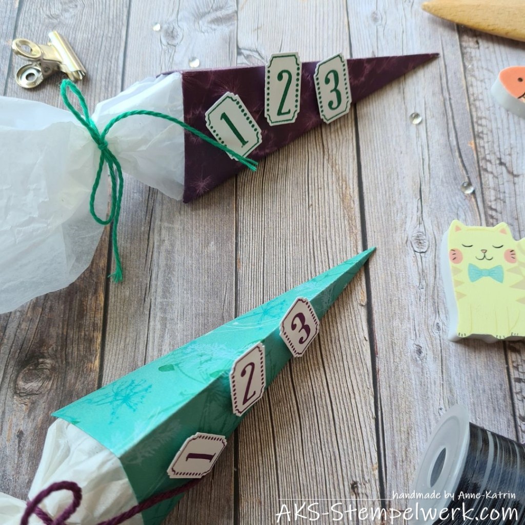 Anleitungen zu den (Mini-)Schultüten gibt es zu Hauf im Netz und es geht wirklich ruckzuck. 😊