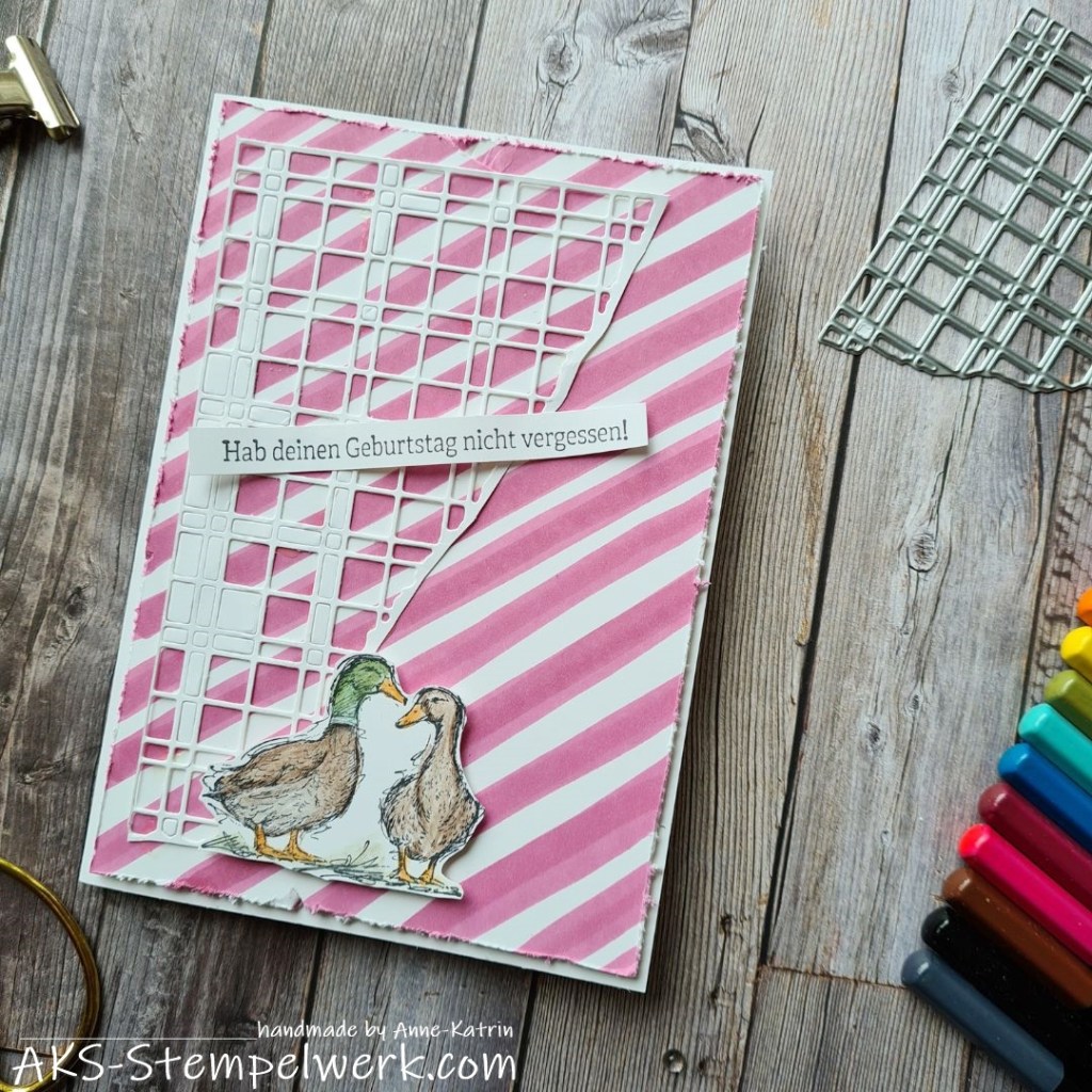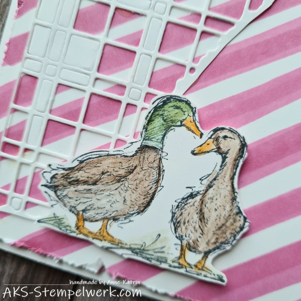 Verwendet habe ich hier den süßen Entenstempel aus dem SAB-Set „Stylish Sketches“.