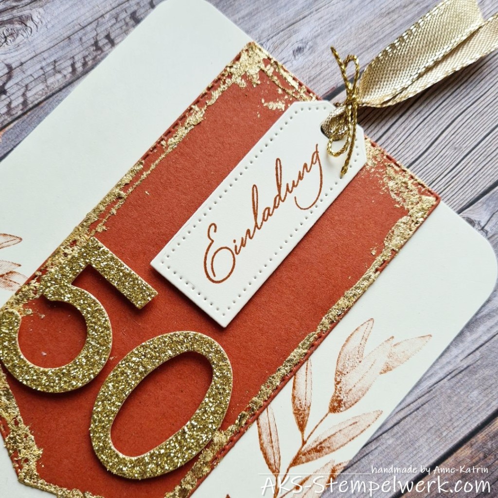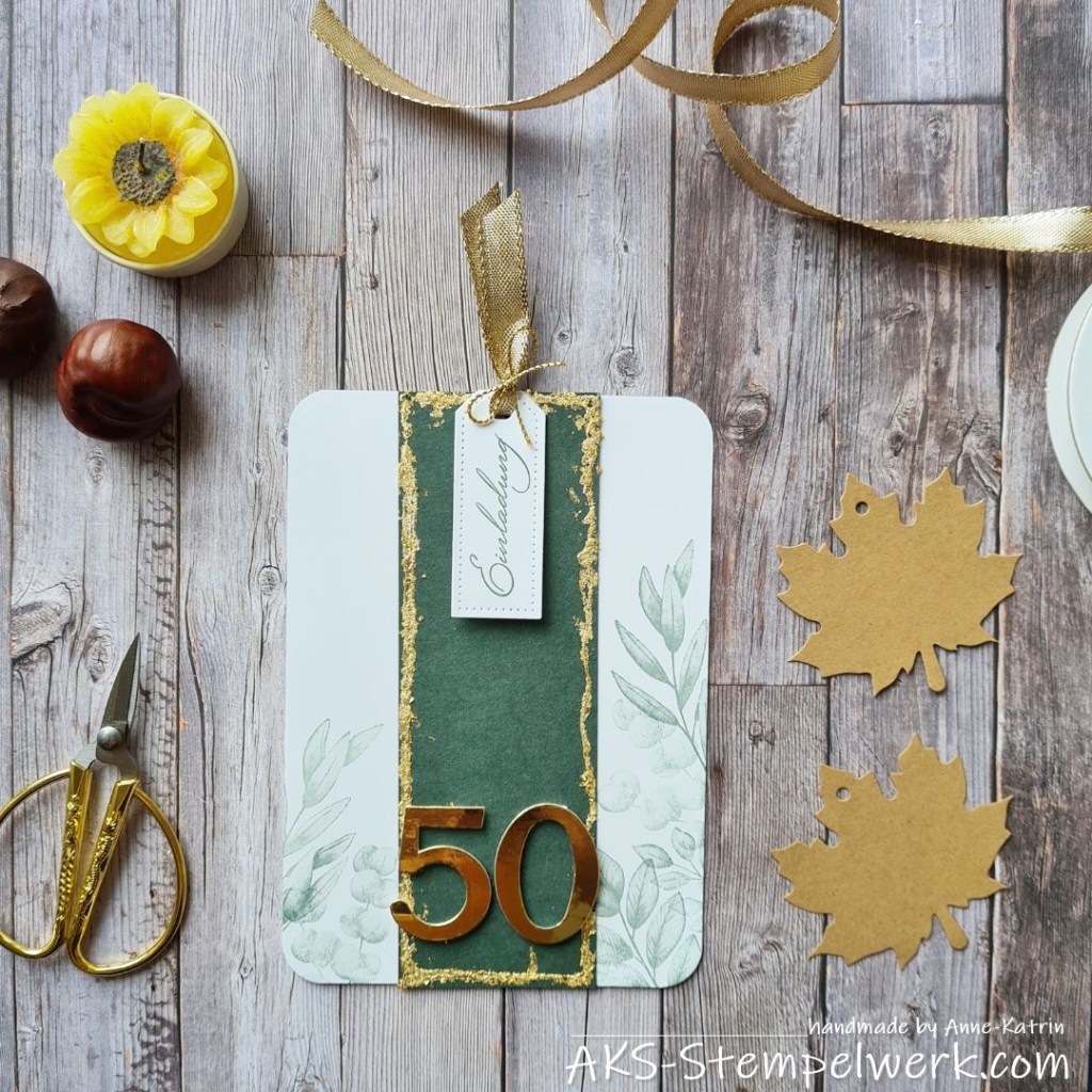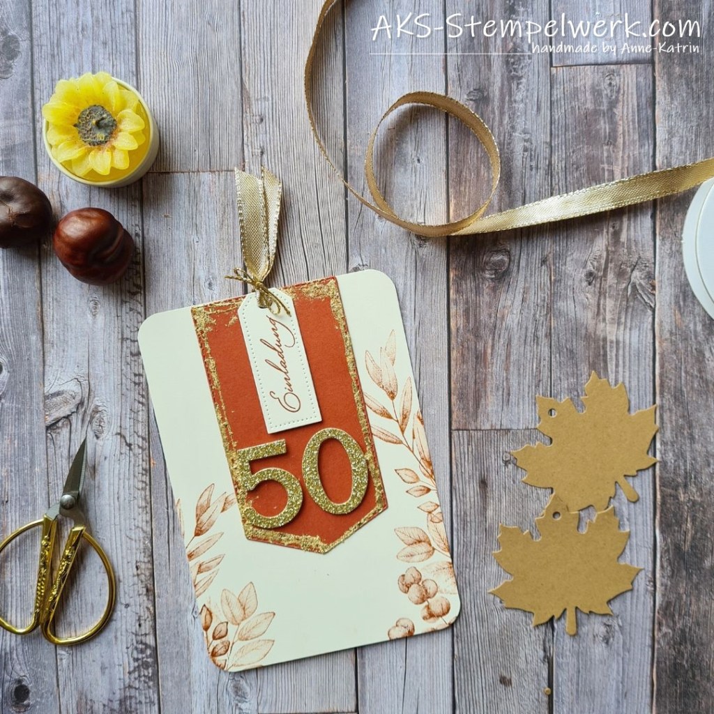 Nun habe ich vor allem das „gold“ aus dem Motto „goldener Herbst“ in den Fokus genommen und anlässlich einer bevorstehenden goldenen Hochzeit im Herbst, mich an unterschiedlichen Einladungsversionen versucht.