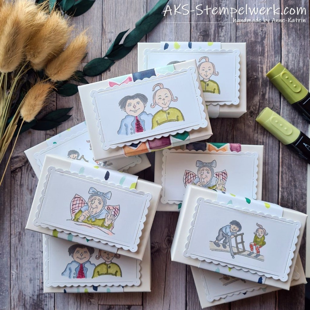 Für die Boxen habe ich die „Leckereienschachteln im Umschlagdesign“ (Minikatalog Juli – Dezember 2022, S. 13 und S. 83) verwendet.