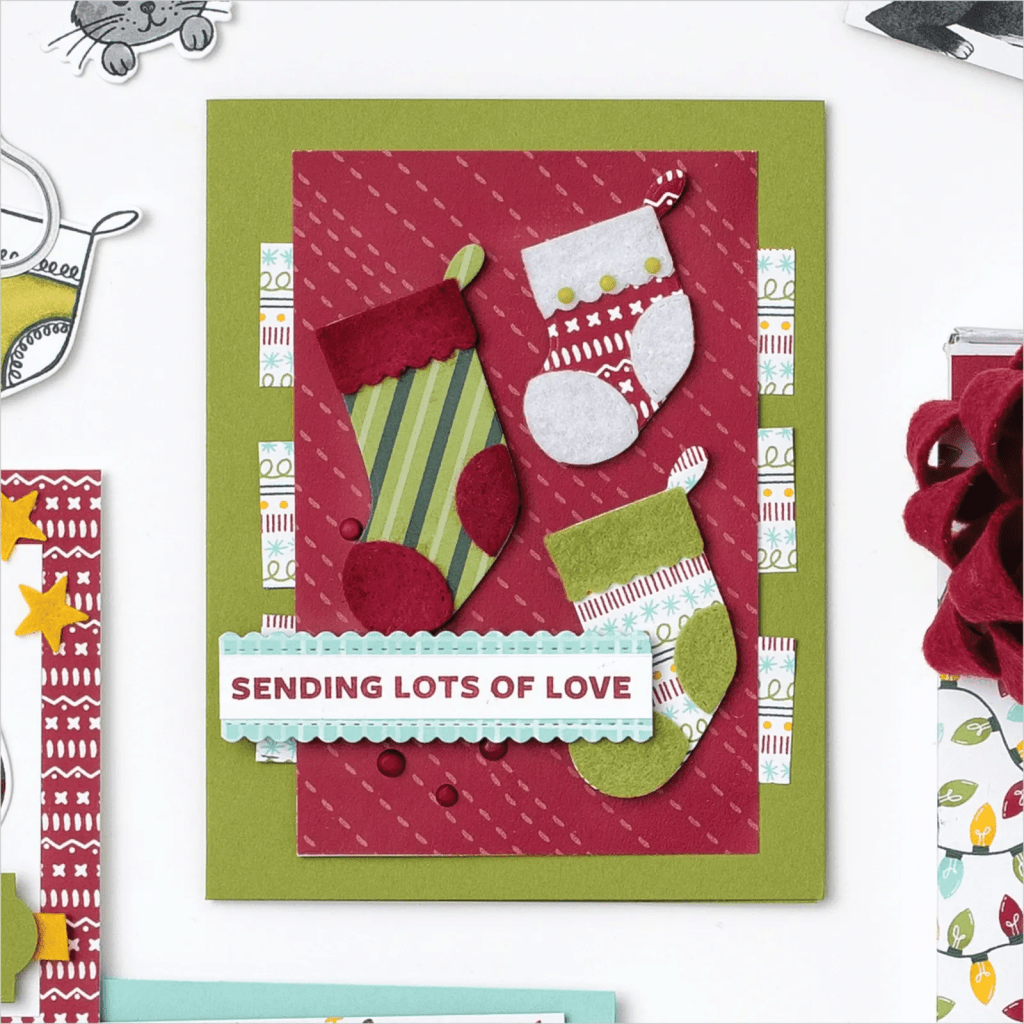 Jedemenge Stanzen und Designerpapier, aber auch Prägefolder und Schmucksteine etc.
