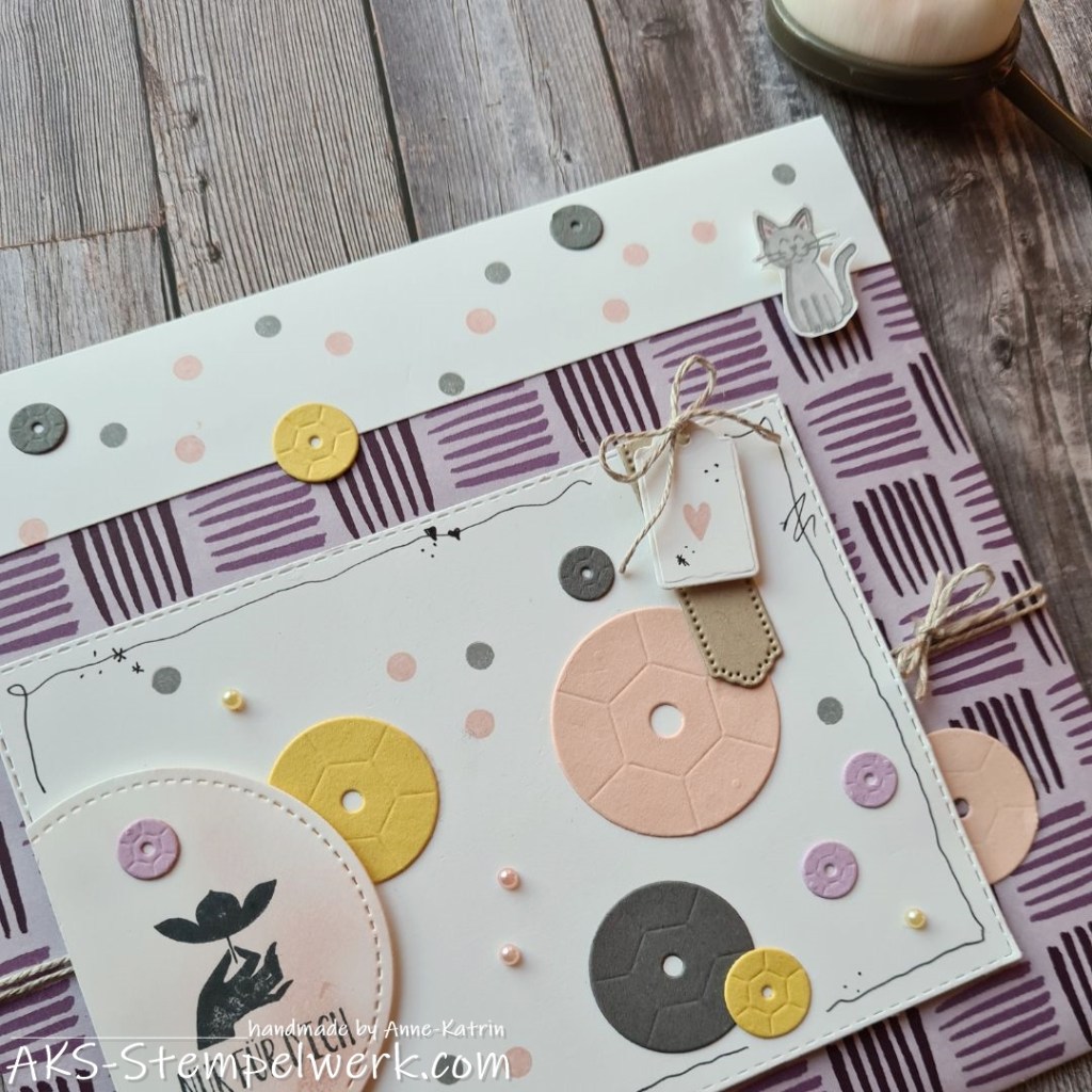 Für die Verzierung habe ich u.a. das neue Set „Willkommen“ von der lieben Jenni Pauli verwendet. Ist die kleine Katze nicht der Knüller? Ich liebe die totaaaal. 😍