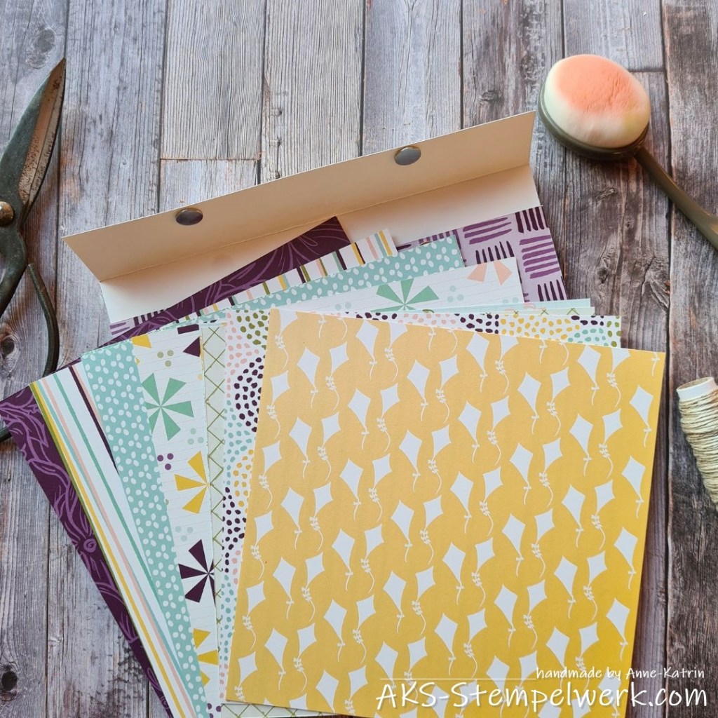 Mir gefallen die Muster dieses Sets richtig gut und da ich weiß, dass viele von Euch nicht in den Genuss eines Gastgeberinnensets kommen, habe ich hier eine Auswahl an Designerpapierbögen in die Taschen gepackt.