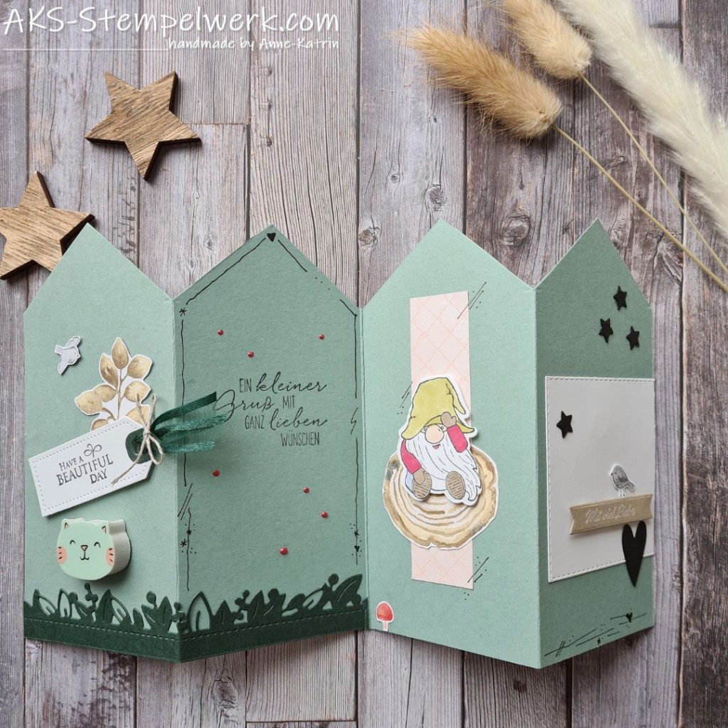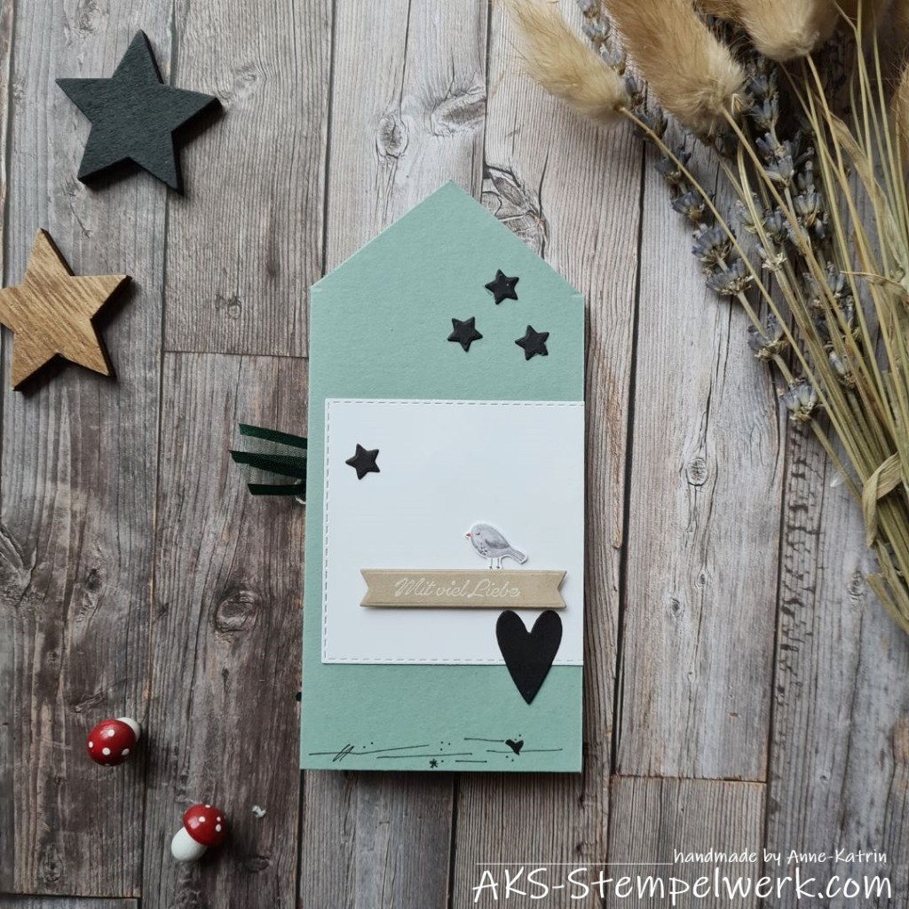 die kleinen Vögel stammen aus dem Designerpapier „Fröhlicher Wald“. Ich würde sagen, ich habe einen guten Rundumschlag gemacht…