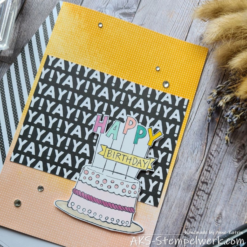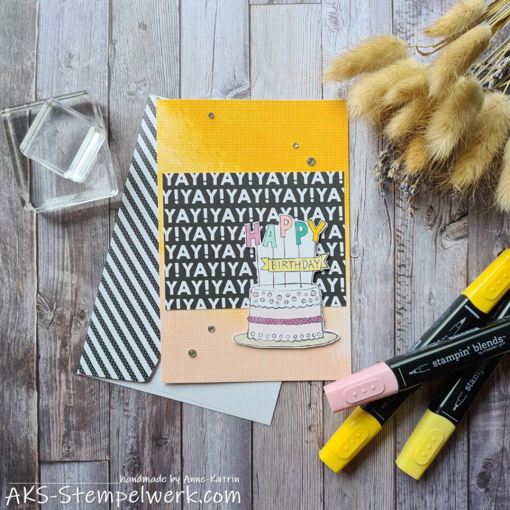 Ich habe für diese Karte auch noch den Geburtstagskuchen aus dem Stempelset „Best Day“ (Minikatalog Januar – April 2023, S. 67) verwendet.