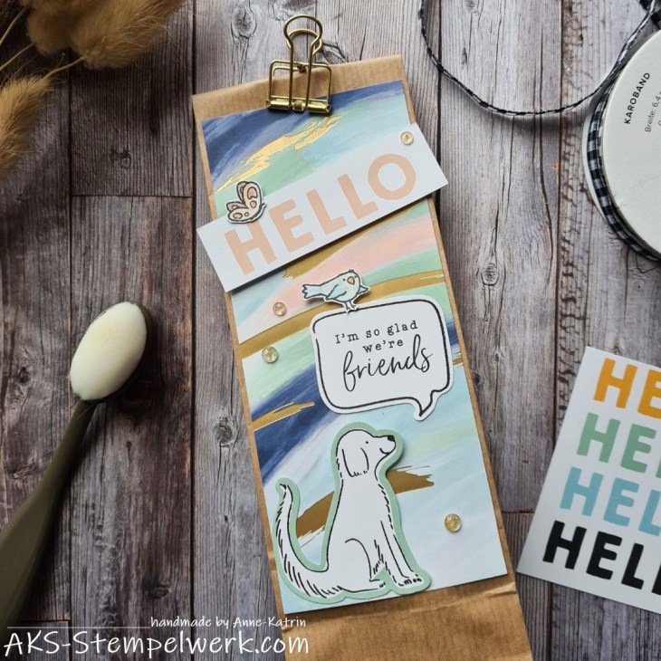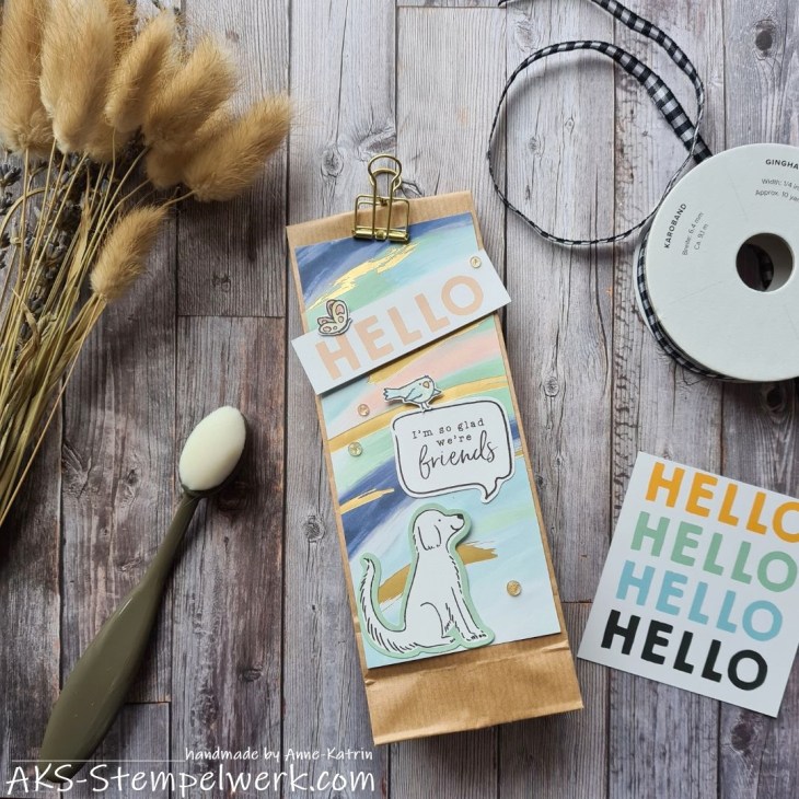 Und zwar habe ich mal wieder meine heißgeliebten Kraft-Papiertütchen aufgehübscht.