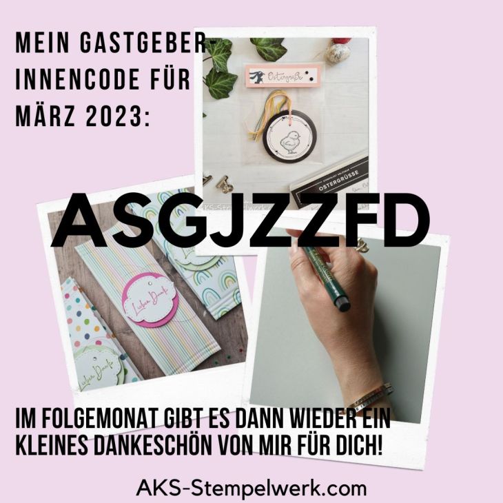 Für alle, die heute oder morgen noch im Onlineshop bestellen, ist hier noch mal mein Gastgeberinnencode für März: