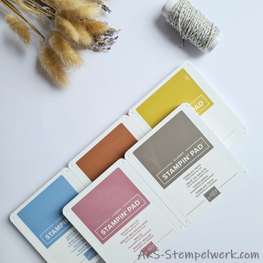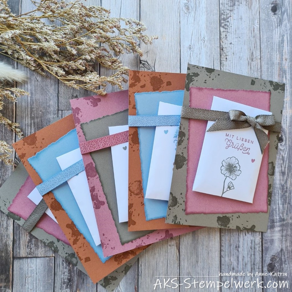 Für den Hintergrund kam auch das Stempelset „Aus der Natur“ (Jahreskatalog S. 24) zum Einsatz. Die Kleckse sind einfach toll für die Hintergrundgestaltung.