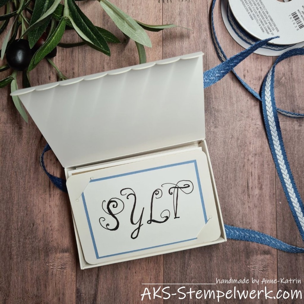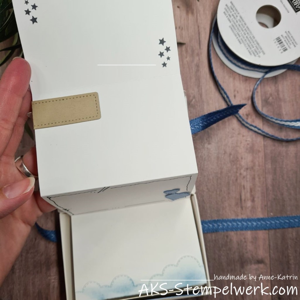 Verschlossen habe ich die Box übrigens mit dem tollen blauen Geschenkband in Flechtoptik.