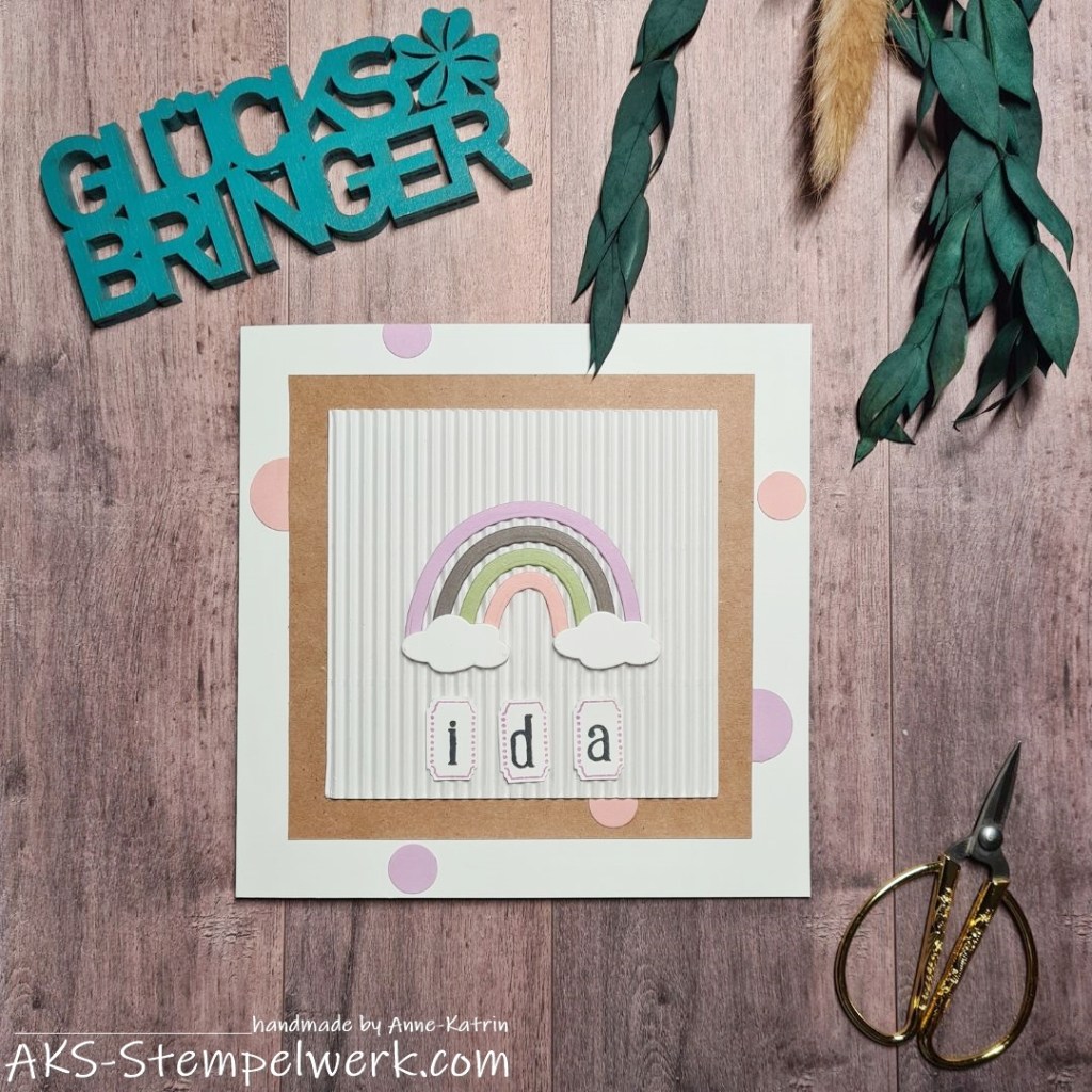 Und wo ich schon mal dabei war… ist in dieser Art gleich noch eine Regenbogen-Glückwunschkarte entstanden.