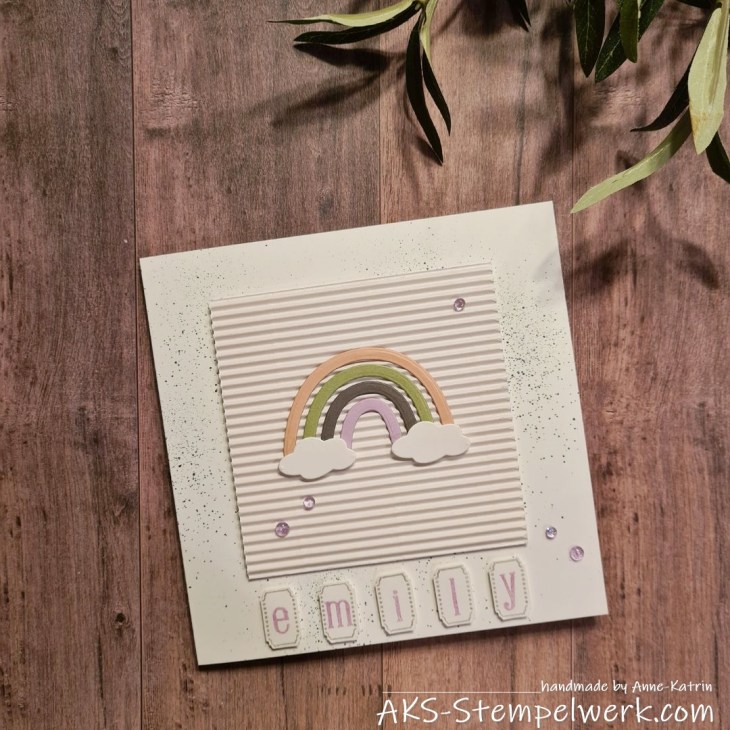 Für diese Geburtstagskarte habe ich neulich mal wieder die schönen Stanzformen „Farbenfroher Regenbogen“ aus meiner Schatzkiste hervorgeholt.