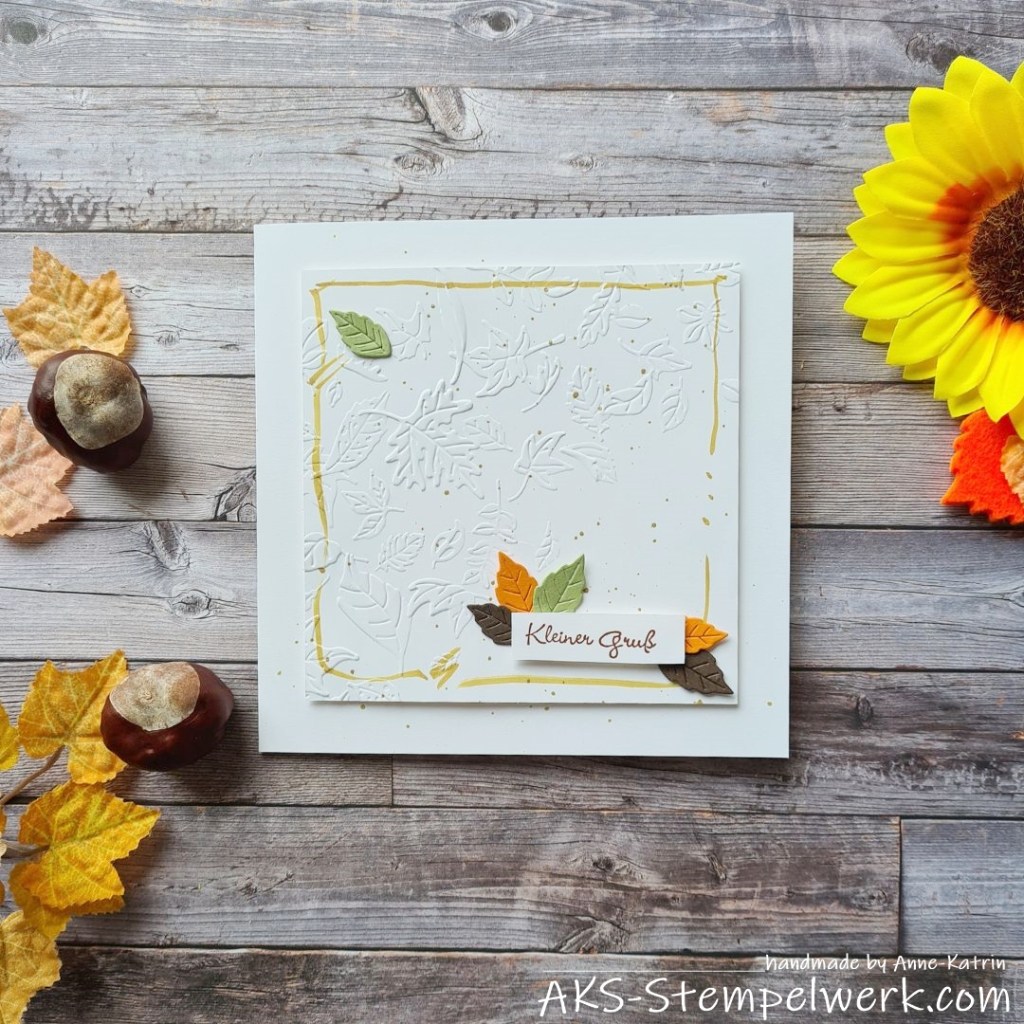 Der Aufleger ist 12 x 12 cm groß und mit dem Prägefolder „Tanzendes Laub“ geprägt.