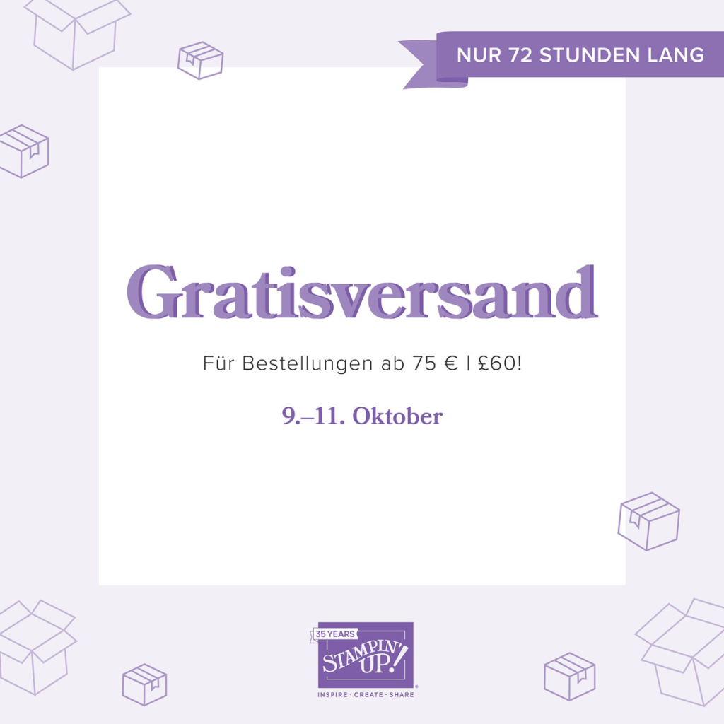 Denn Stampin‘ Up! bietet aktuell 72 h lang Gratisversand an. Das gab’s noch nie!!!