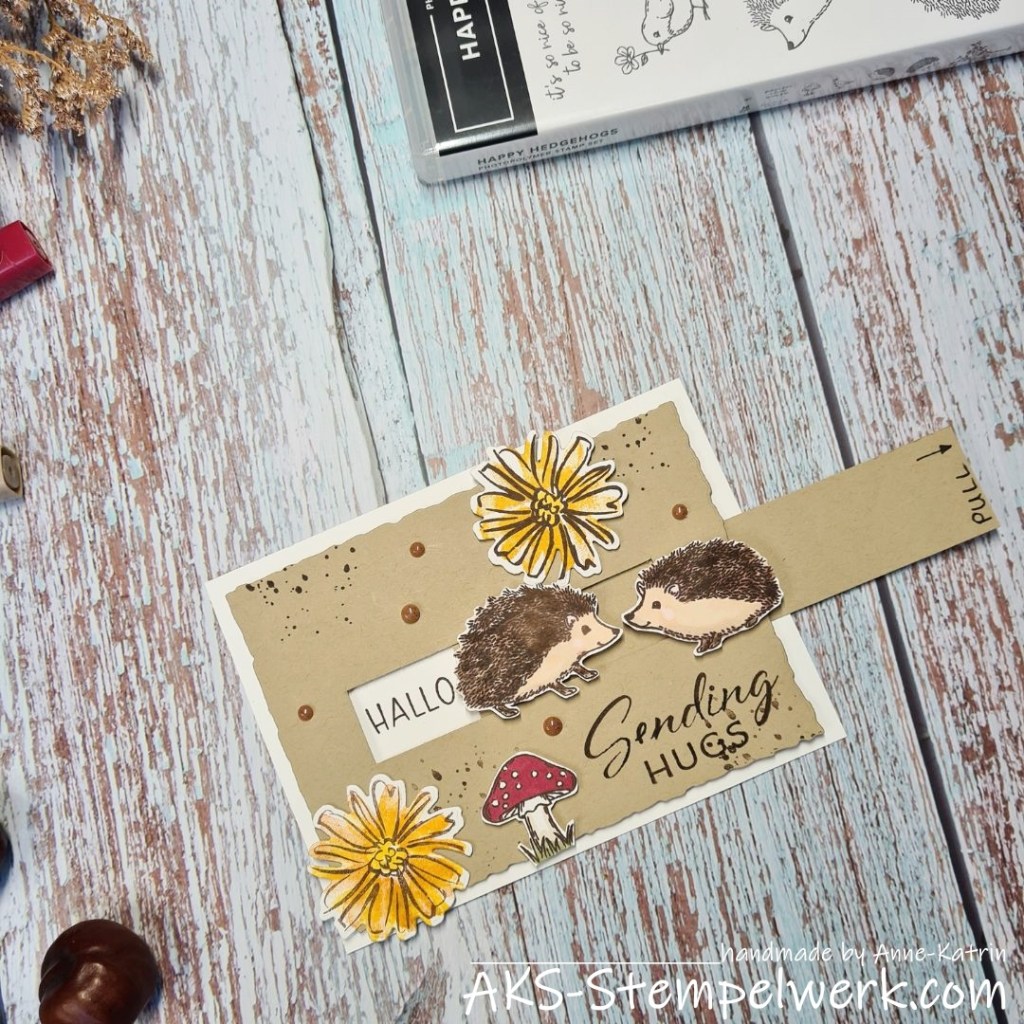 Ich habe mich für eine Slidercard entschieden; eine Karte mit Schiebemechanismus und diese in herbstlichem Design gestaltet.