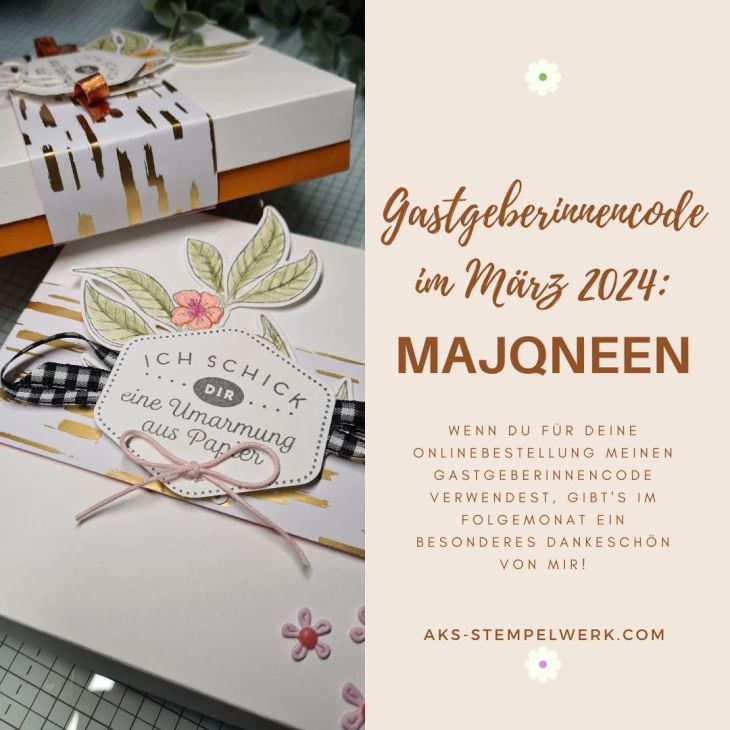 Natürlich habe ich auch im März einen neuen Gastgeberinnencode für Eure Onlinebestellungen.