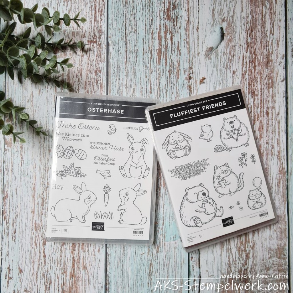 Zu beiden Sets gibt es übrigens ergänzende Stanzformen; zum Osterhasen gehört die passende Handstanze „Osterhase“ und die Stanzformen zum Set „Fluffiest Friends“ könnt Ihr als Produktpaket wieder 10% günstiger bekommen.