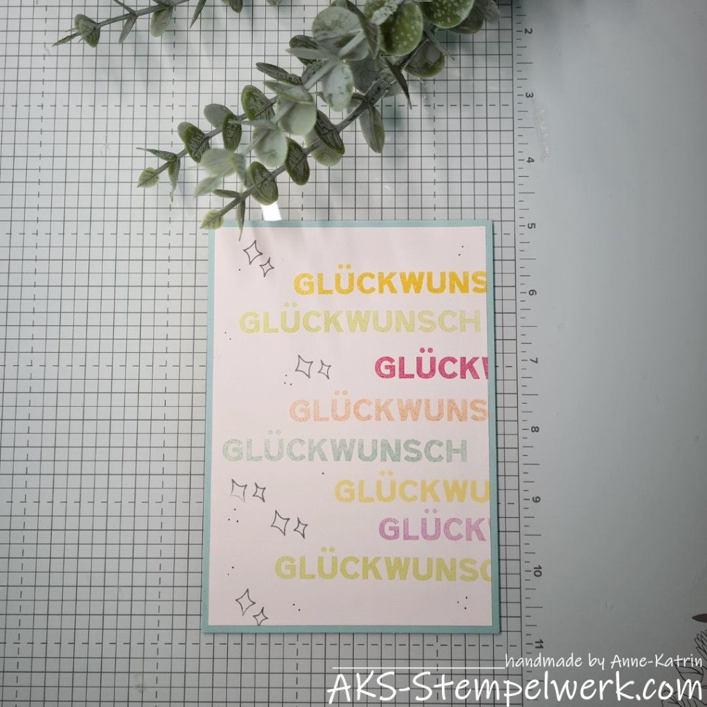 Und den Glückwunschstempel habe ich dann einmal die gesamte Farbpalette durch aufgestempelt.