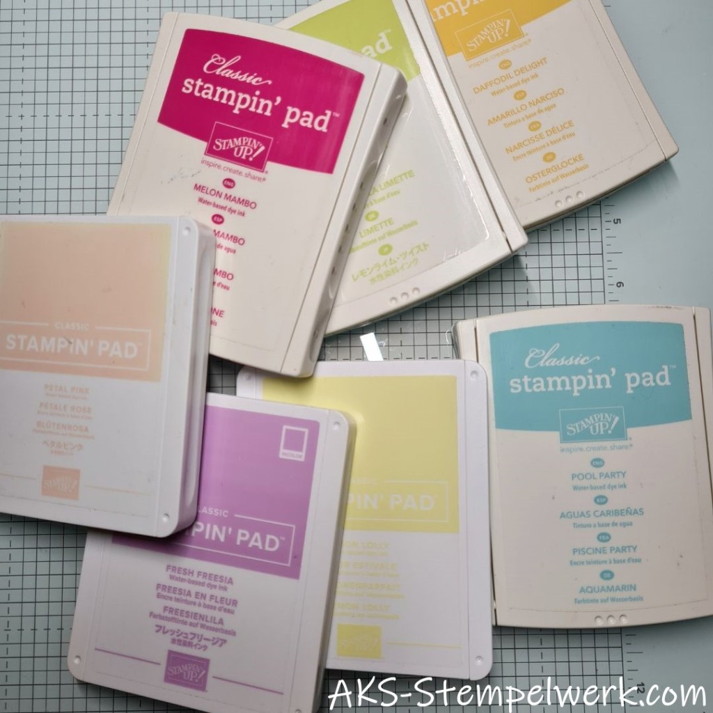 Neulich wurde es bunt auf meinem Basteltisch und ich habe einen ganzen Schwung Stempelkissen zusammengesucht.