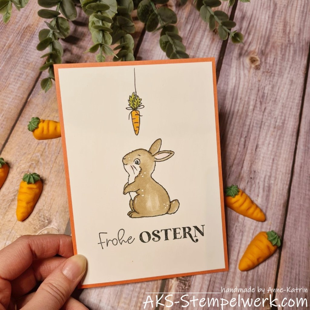 Und hier habe ich den Hasen und seine süße Möhre aus dem Set „Osterhase“ coloriert. 😊