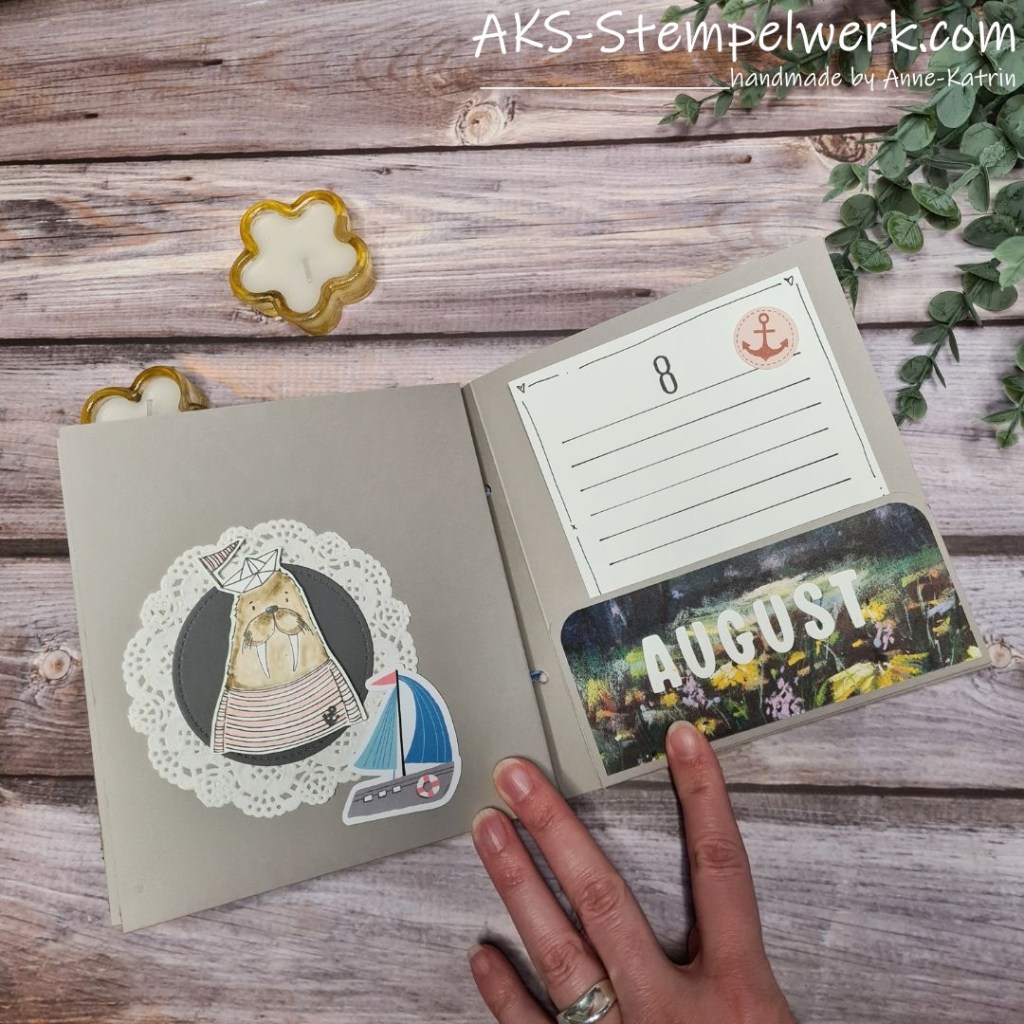 Ich hab 12 Seiten erstellt – für jeden Monat 1 und die jahreszeitlich versucht zu dekorieren.