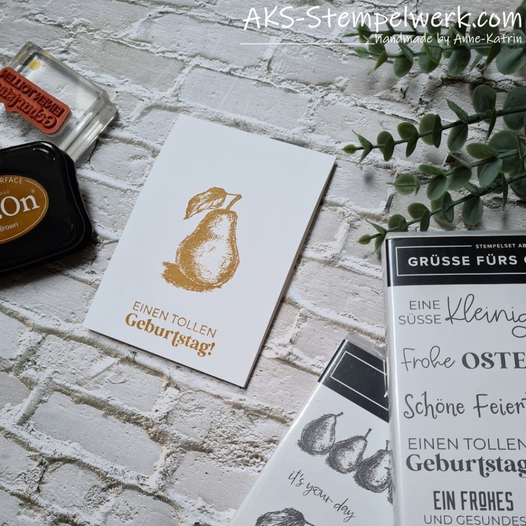 Und natürlich gab es die erste Birnen-Geburtstagskarte im clean and simple-Style, perfekt geeignet auch für Männer 😉