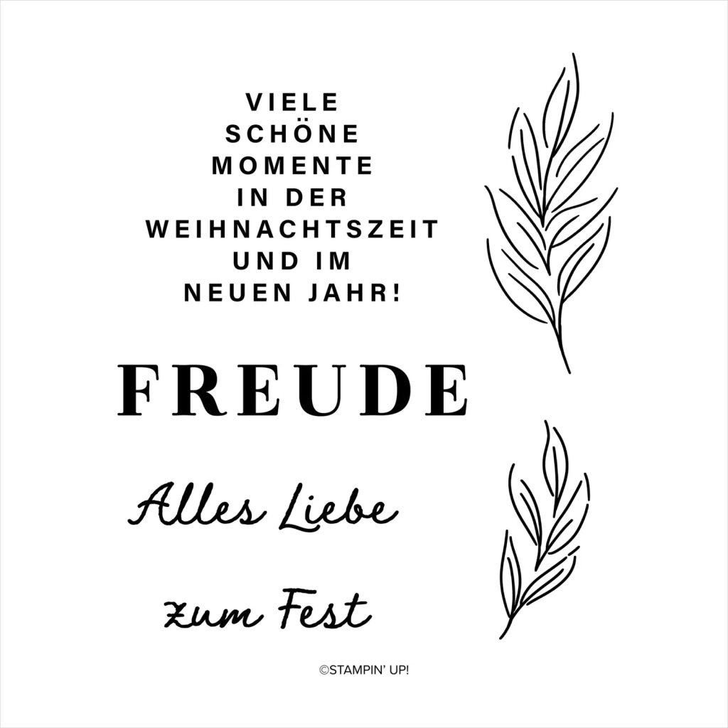 Das Stempelset gibt es natürlich auch in deutsch und besticht durch seine klare Schrift. Ich mag die Zweige total gerne.