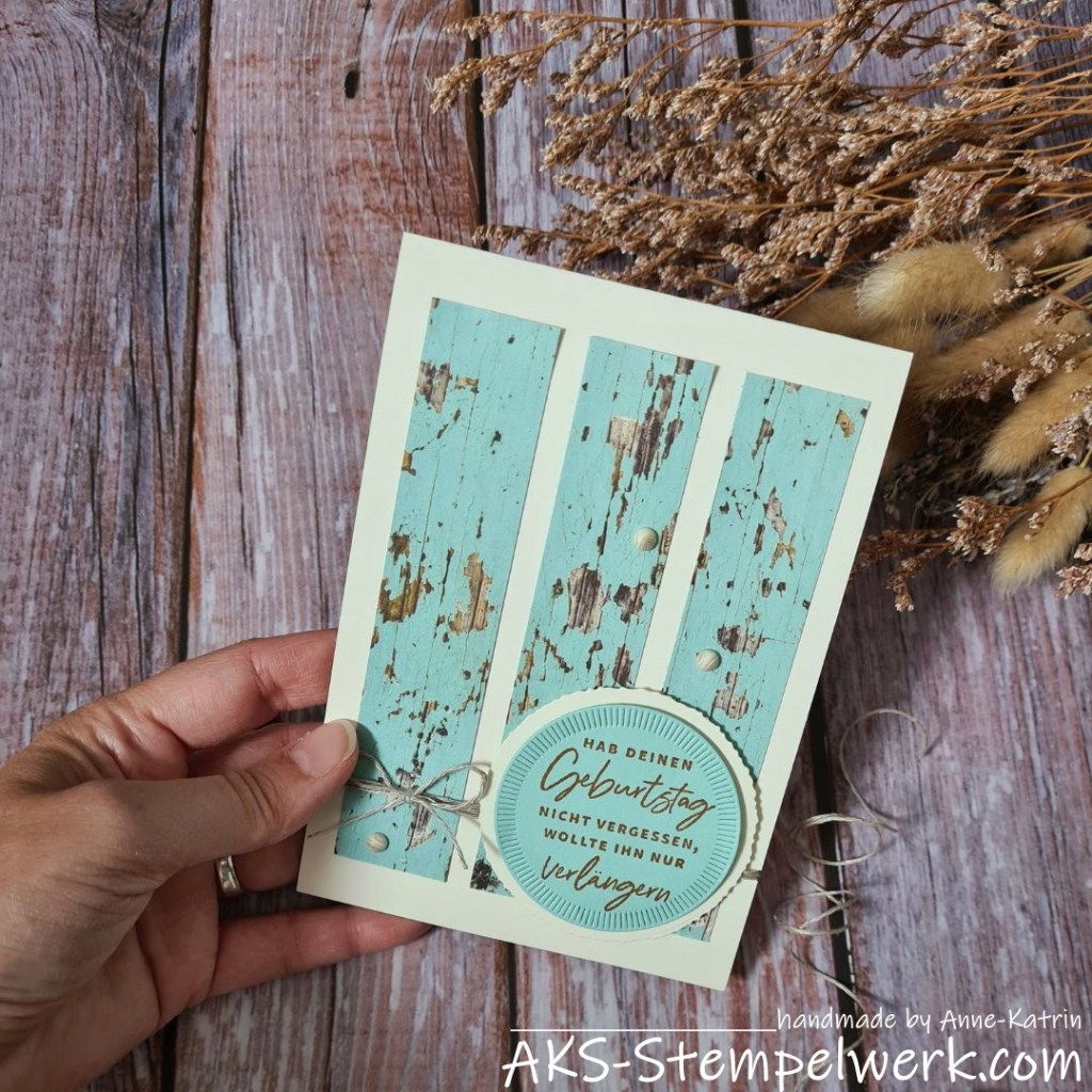 Ist das Papier mit der Holzmaserung nicht zauberhaft? Aber definitiv zu schade, um es nur zu streicheln. Das Papier will schließlich unter Leute und sich zeigen 😉