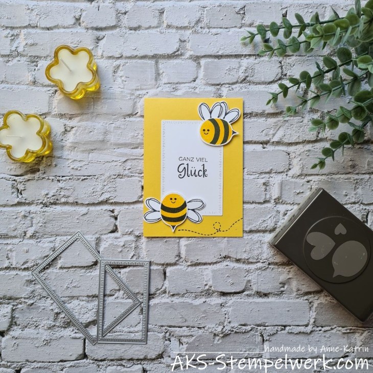 Ich finde zu dem sommerlichen Wetter passen die süßen Bienchen ganz hervorragend. Und im Nu ist eine süße Glückwunschkarte entstanden.