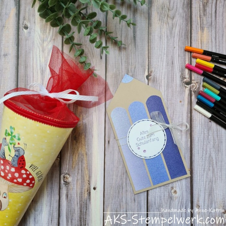 Dazu gehört eben auch die Einschulung und so habe ich neulich diese Buntstiftkarte zur Einschulung gemacht.