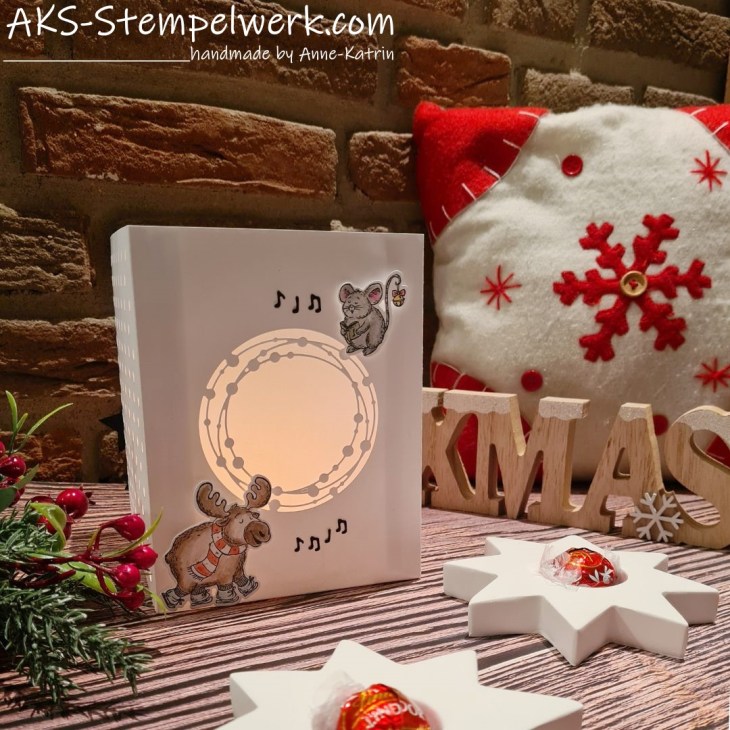 Sind die kleine Maus und der Elch nicht zuckersüß??? Ich habe sie mit den Aquarell- und den Mischstsiften coloriert. Die kleinen Noten stammen ebenfalls aus dem Stanzset.