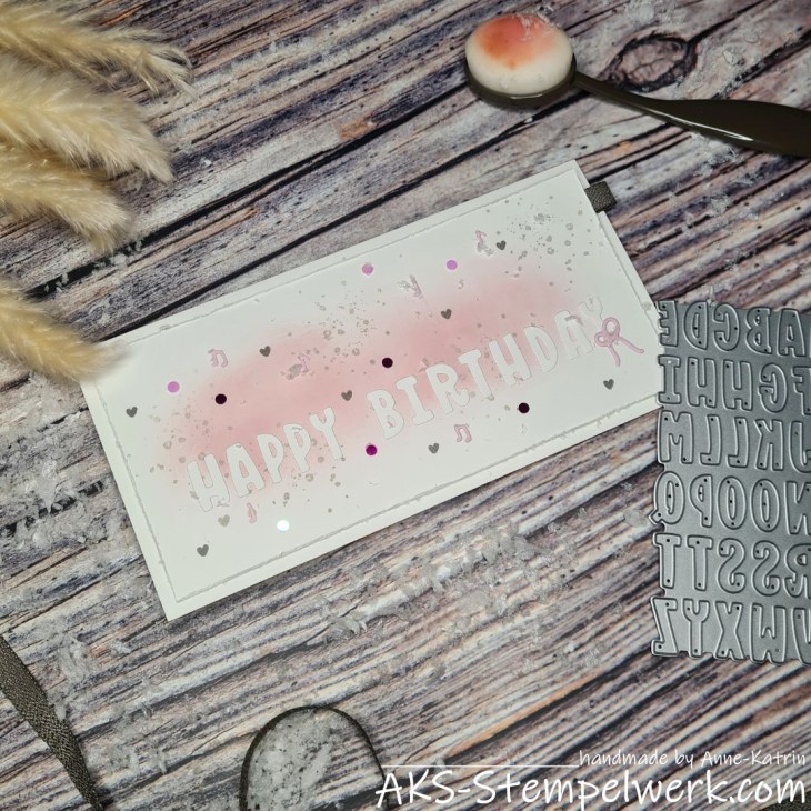 Die Buchstaben sind mit der Stanzform „Mini-Alphabet“ ausgestanzt und die Noten und das Schleifchen findet Ihr in dem Stanzset „Weihnachtsfreunde“ (aktuell übrigens noch mir Rabatt zu haben!).
