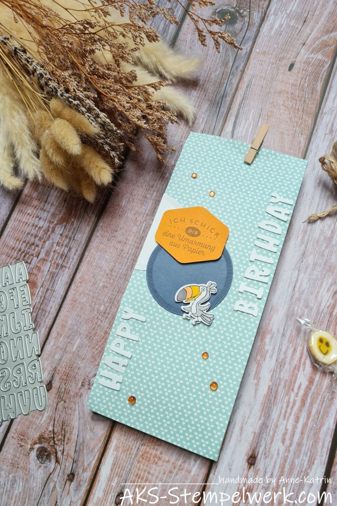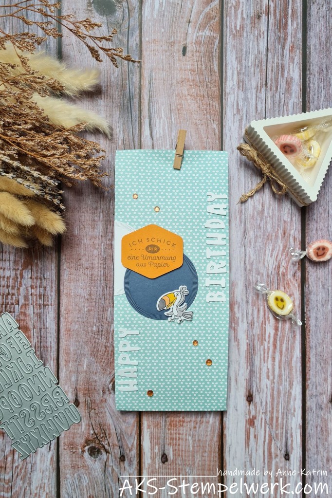 Der Spruch stammt aus dem Set „Hexagone von Herzen“ mit der dazugehörigen Handstanze.