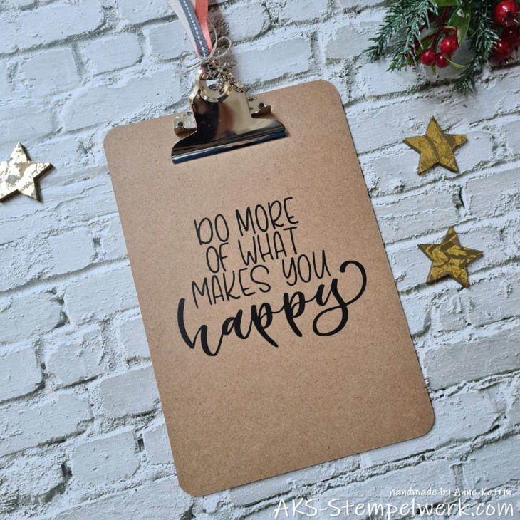 Ich habe für meine Teammädels ein kleines Überraschungspräsent zum Start in ein neues kreatives Jahr gewerkelt. Dieses Klemmbrett habe ich aufgehübscht und mit einem schönen Spruch beplottet.