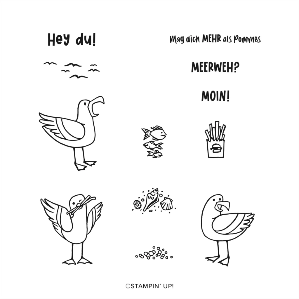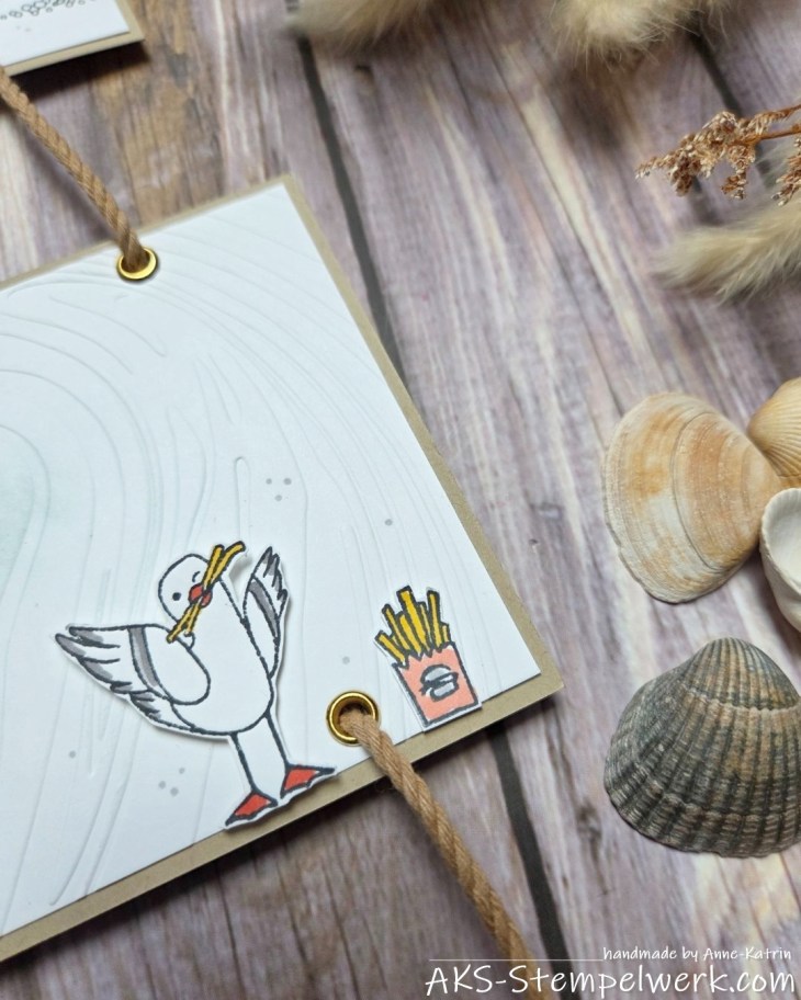 Die Möwen sind mit den Stampin‘ Blends coloriert und mit den 3D-Pads aufgeklebt.