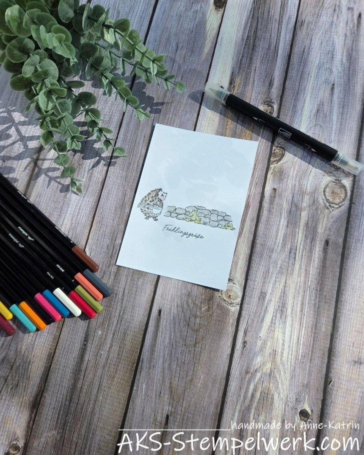 Neben den klassischen Osterkarten sind auch ein paar Frühlingsgrüße entstanden. Bisher habe ich Igel ja meistens mit Herbst in Verbindung gebracht. Aber im Frühling werden die Meckis ja auch wieder munter und erwachen irgendwann aus ihrem Winterschlaf … 😉