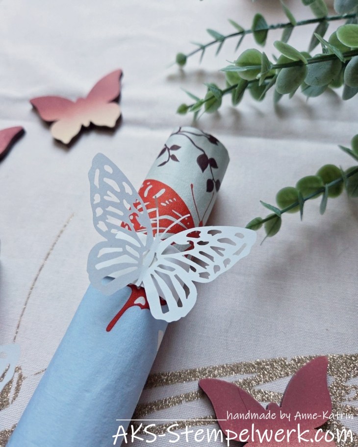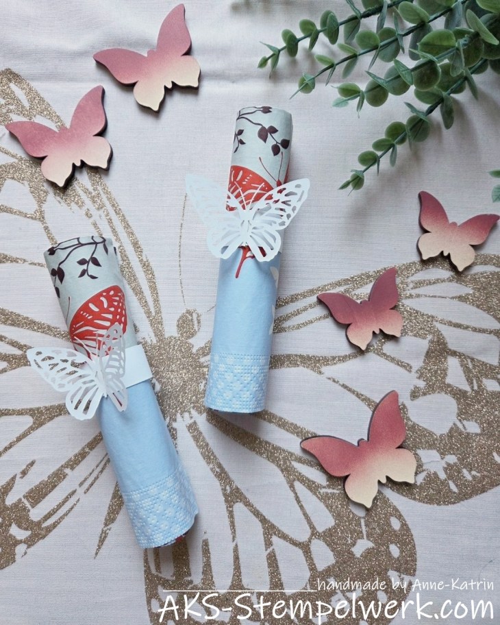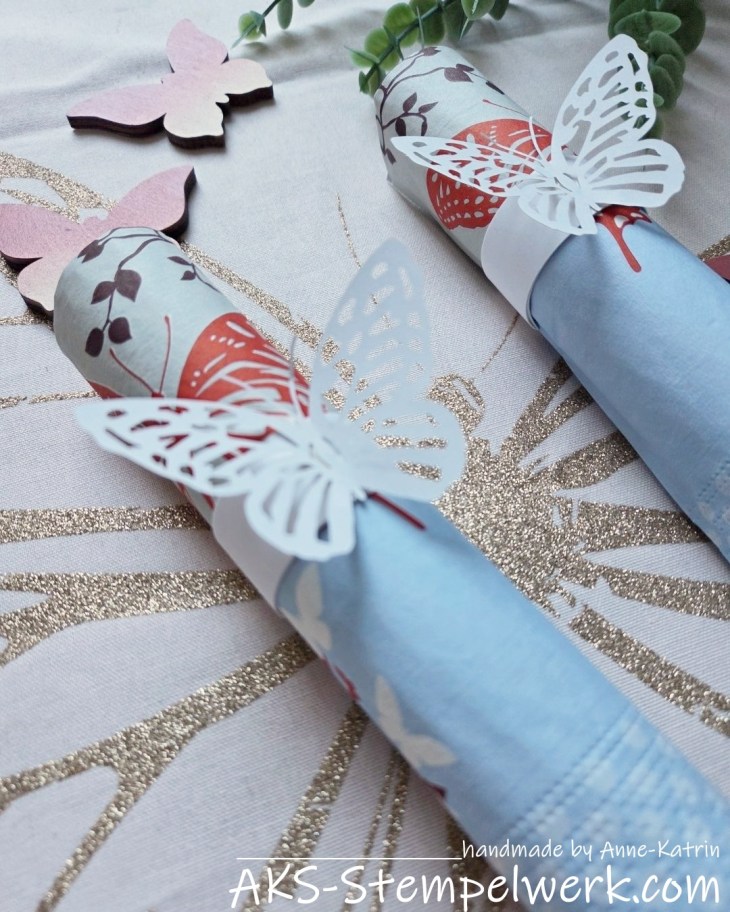Oder aber Ihr setzt noch ein paar Glitzersteinchen auf die Schmetterlinge.