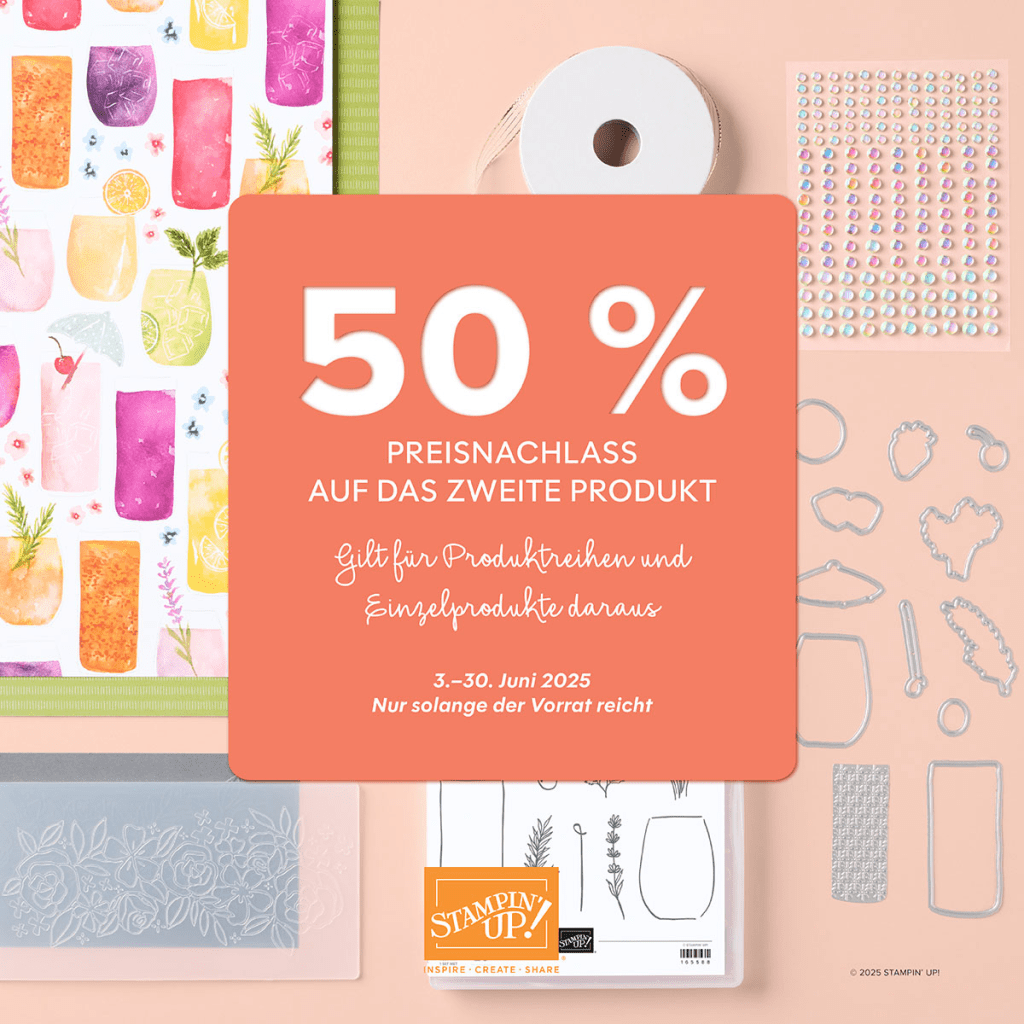 - Wenn Ihr dieses Aktionsangebot nutzt, wird der Preisnachlass von 50 % auf den Artikel mit dem niedrigeren Preis angewendet. (Beim Kauf einer Produktreihen-Kollektion und eines Stempelset aus einer Produktreihe, gilt für die Produktreihe der volle Preis und für das Stempelset der Preisnachlass von 50 %.)