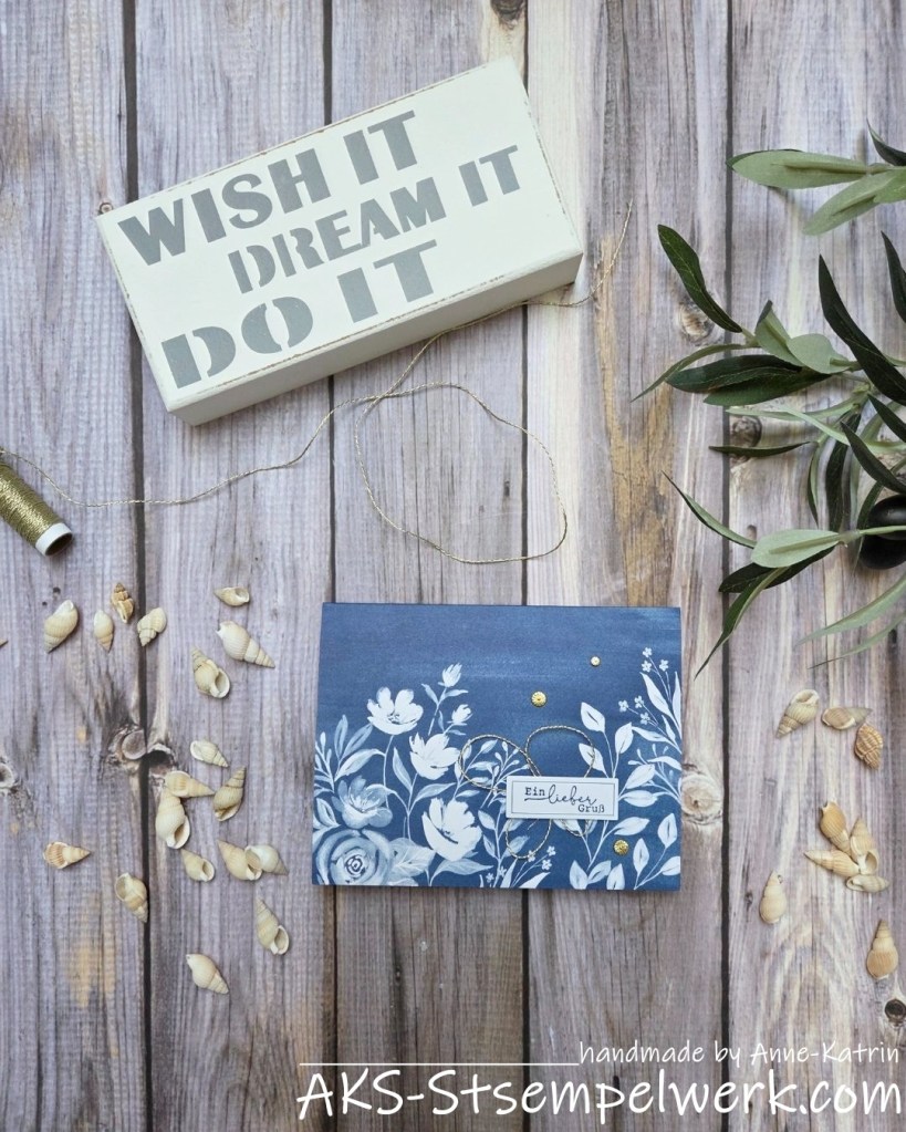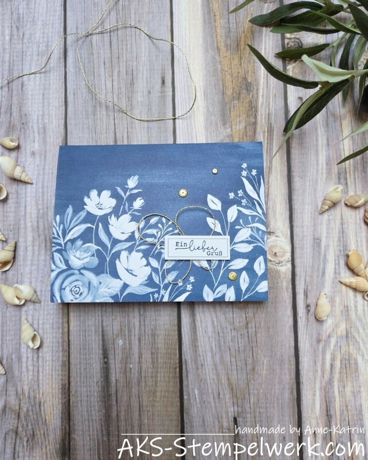 Aber der Satz passte heute auch total gut zu diesem Beitrag. Denn ich hatte hier ja gerade erst die Karte Nr. 1 mit dem Kreativset „Berührendes in blau“ gezeigt… war aber von dem Set so begeistert, dass ich gleich weitergebastelt habe. 😍