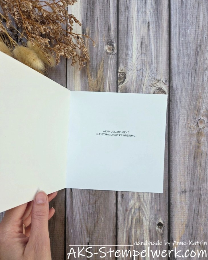 Auch für innen habe ich einen passenden Spruch gefunden, und zwar aus dem Stempelset „Friedlicher Hain“.