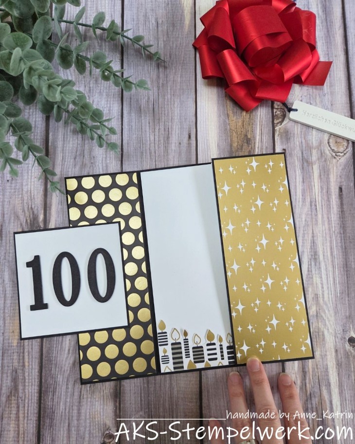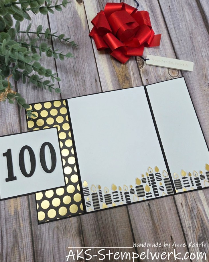 Die Kerzen habe ich aus dem Designerpapier ausgeschnippelt und wie eine Art Skyline aufgeklebt. Zugegeben, 100 sind es nicht geworden, aber ne ganze Menge.