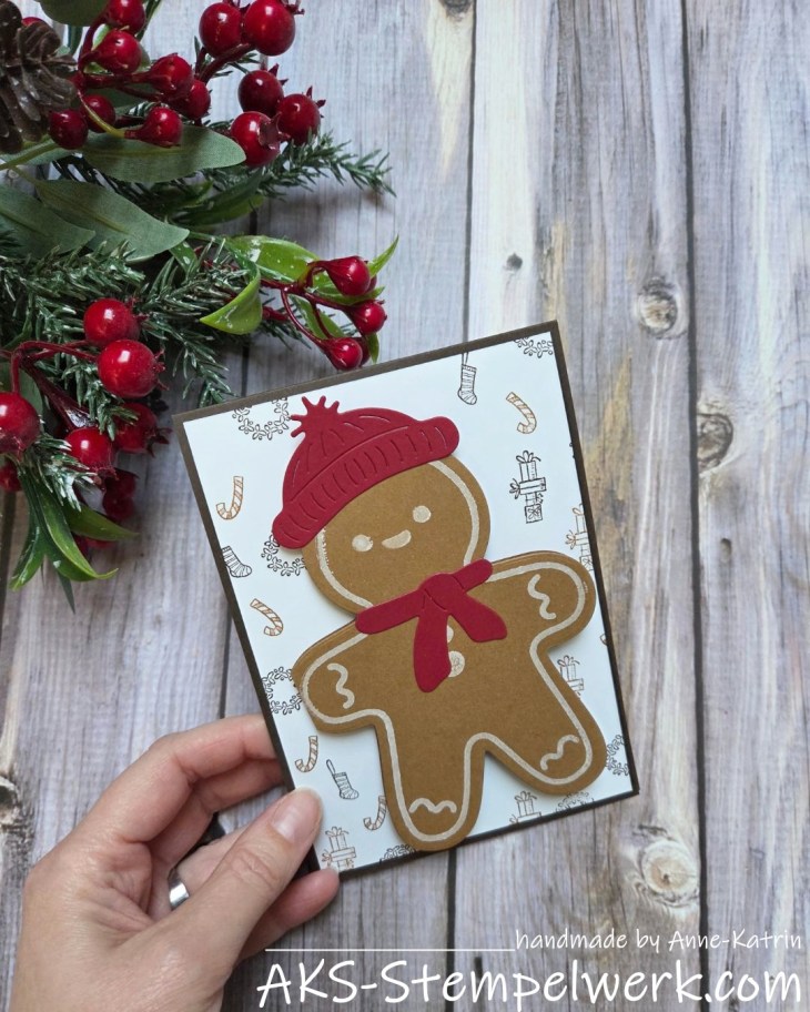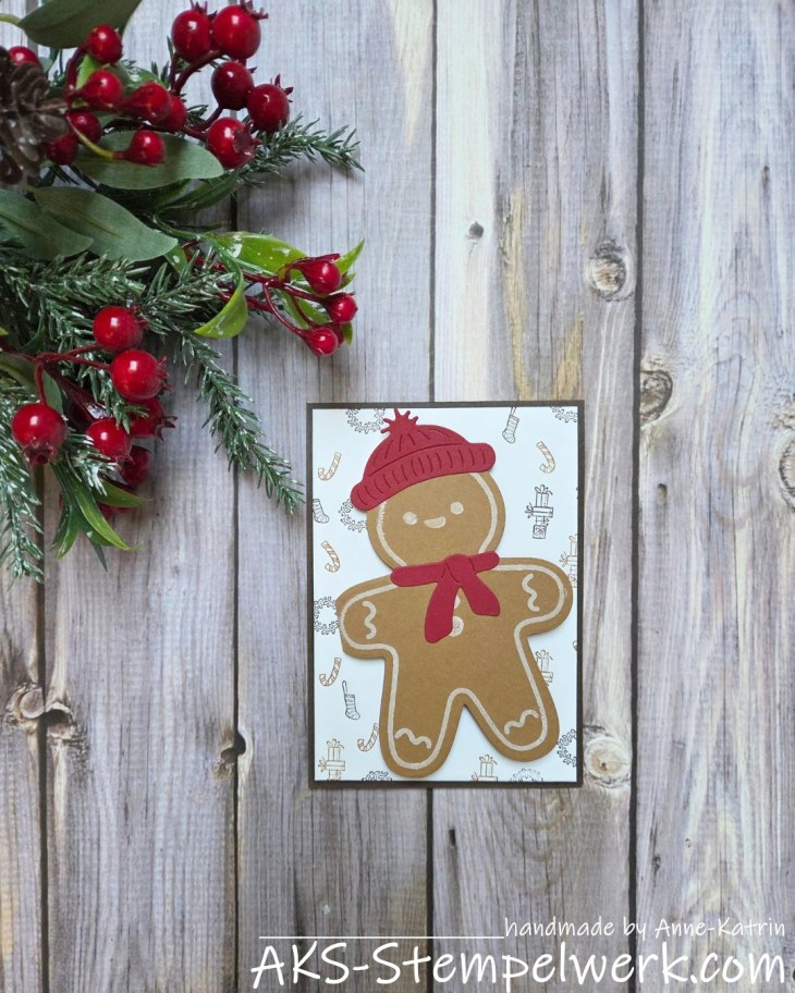 Stampin‘ Up! hat dieses Jahr ein Paket aus Stempel- und Stanzset mit diesem supersüßen „Lebkuchenmann“ im Sortiment.