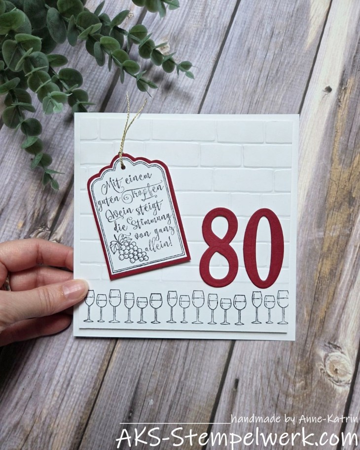 Und für einen Weinfreund habe ich das Stempelset „Ein guter Tropfen“ aus meinem Archiv an Stempelschätzchen hervorgeholt. 🙂