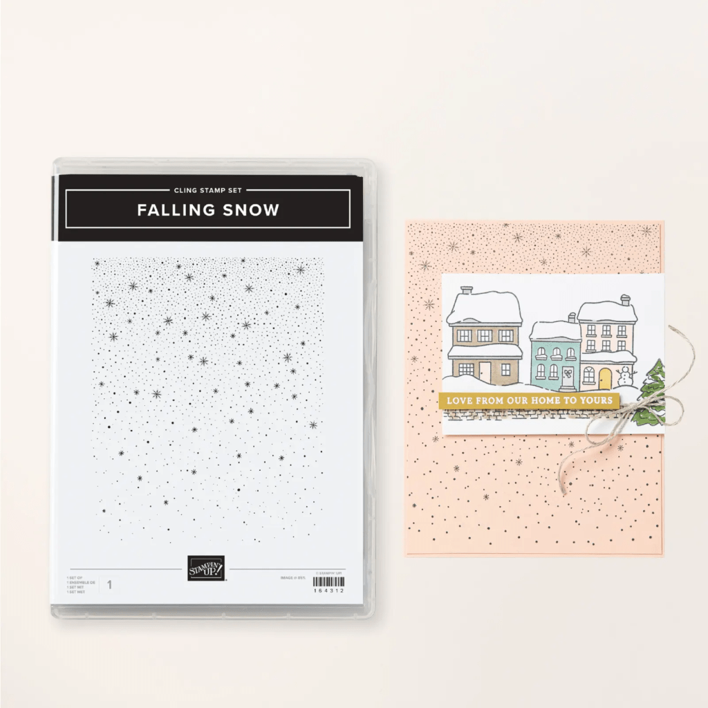 Der Layer aus Farbkarton in grundweiß ist mit dem Hintergrundstempel „Falling Snow“ in marineblau bestempelt.