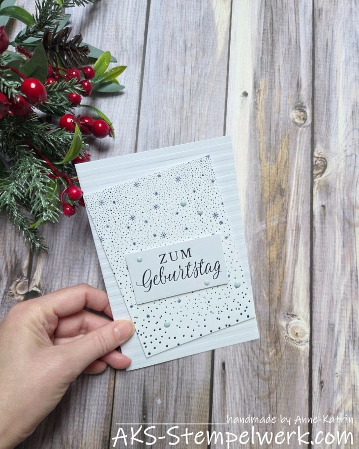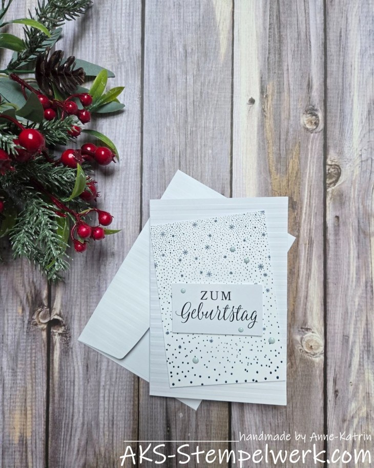 Passsend zum Winterwetter und den Vorhersagen für das Wochenende habe ich hier eine Geburtstagskarte mit Schneegestöber für Euch: