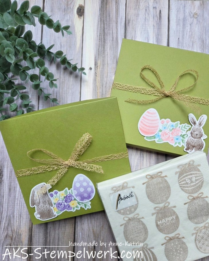 Für kleinere Boxen könnt Ihr natürlich auch DIN A4-Bögen nehmen, aber ich wollte gerne eine Box für meine Osterservietten basteln. 🙂