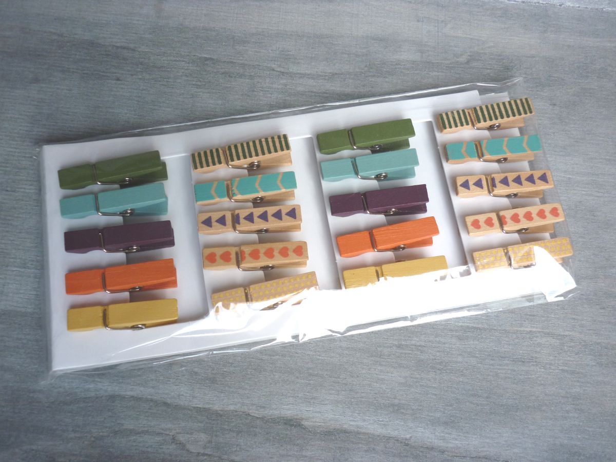 Bedruckte Wäscheklammern (Holz): 20 Stück, neu + OVP, Maße: 3,5 cm