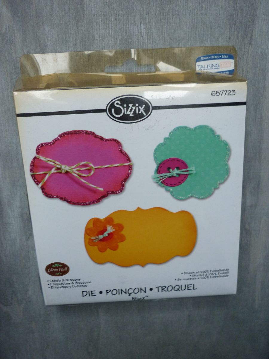 Sizzix – Bigz, DIE: Labels & Buttons (benutzt, aber sehr gut erhalten, nur die Verpackung ist verblichen und etwas eingerissen): 12 € + Porto