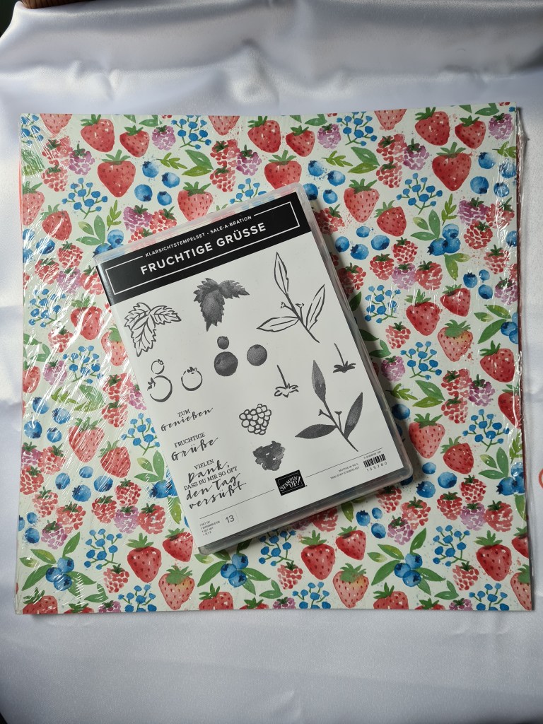 Set „Designerpapier Sommerfrüchte + Stempelset Fruchtige Grüße“: 25,00 € + Porto