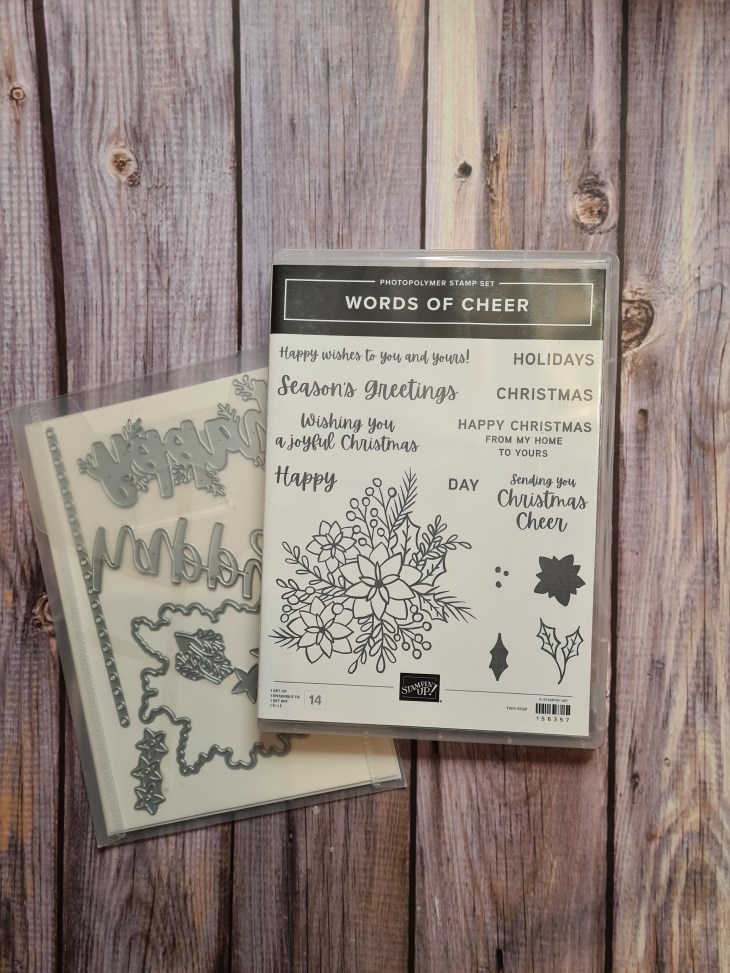 Stempelset „Words of Cheer“ + Stanzformen „Happy und Cheer“, 35,00 € + Porto