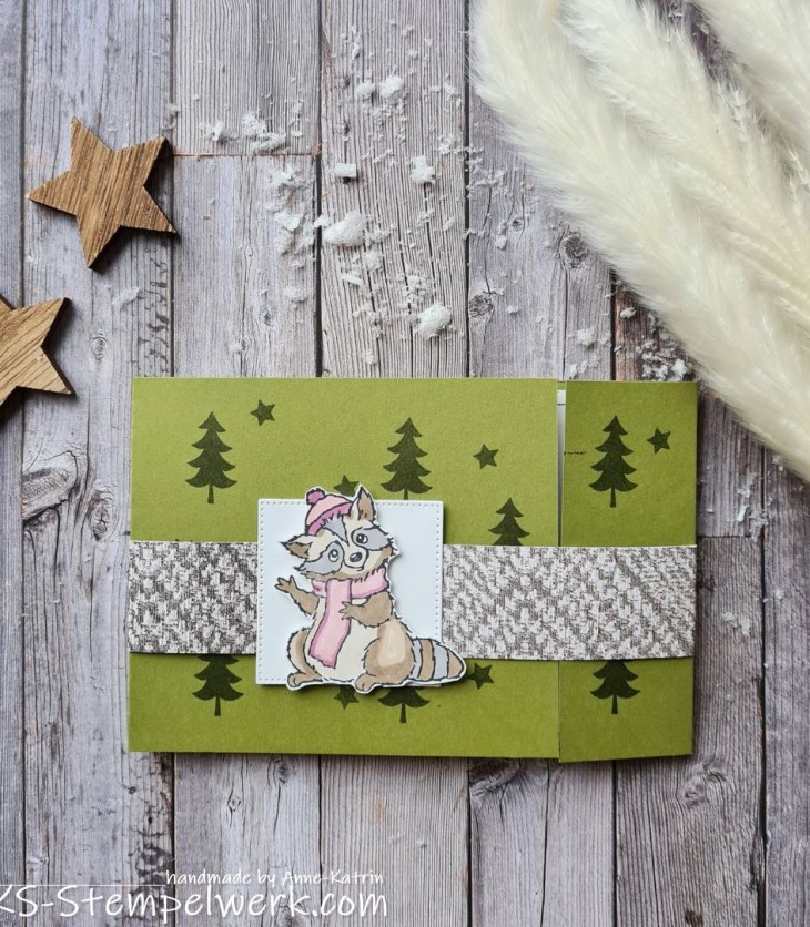 kommt diese Grußkarte daher, bevor ich endlich in den Weihnachtsmodus umswitche.Aber dieses quadratische Kärtchen wartet…